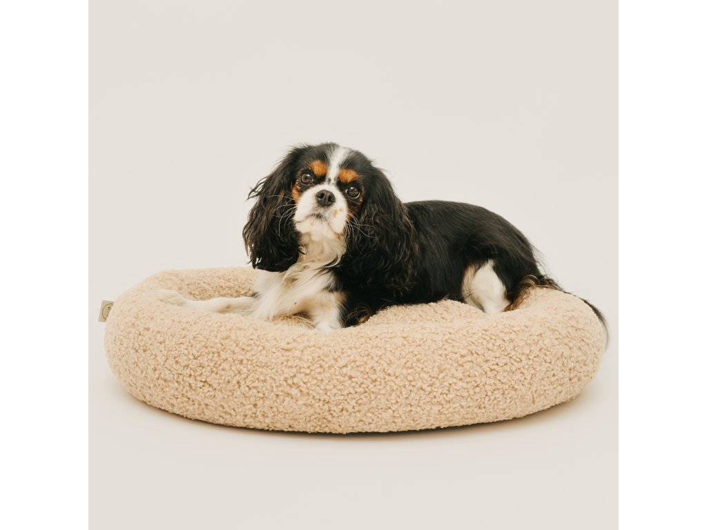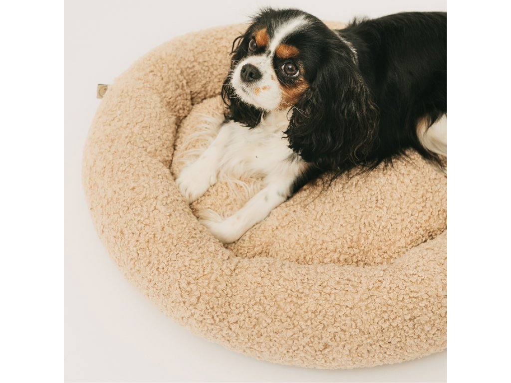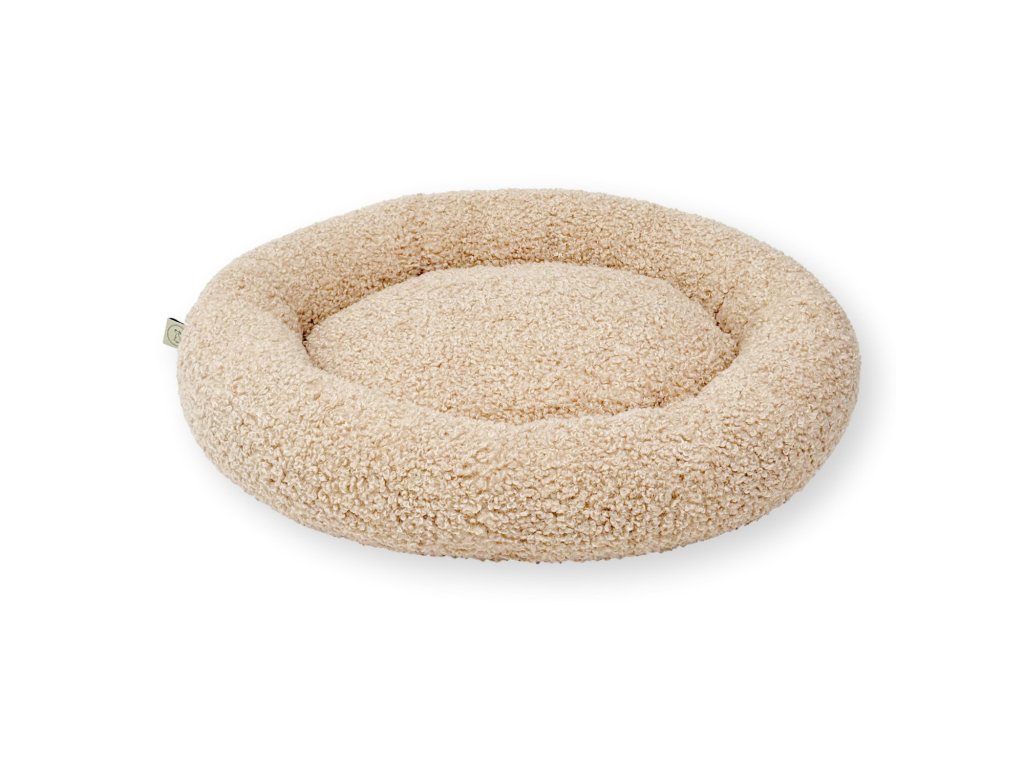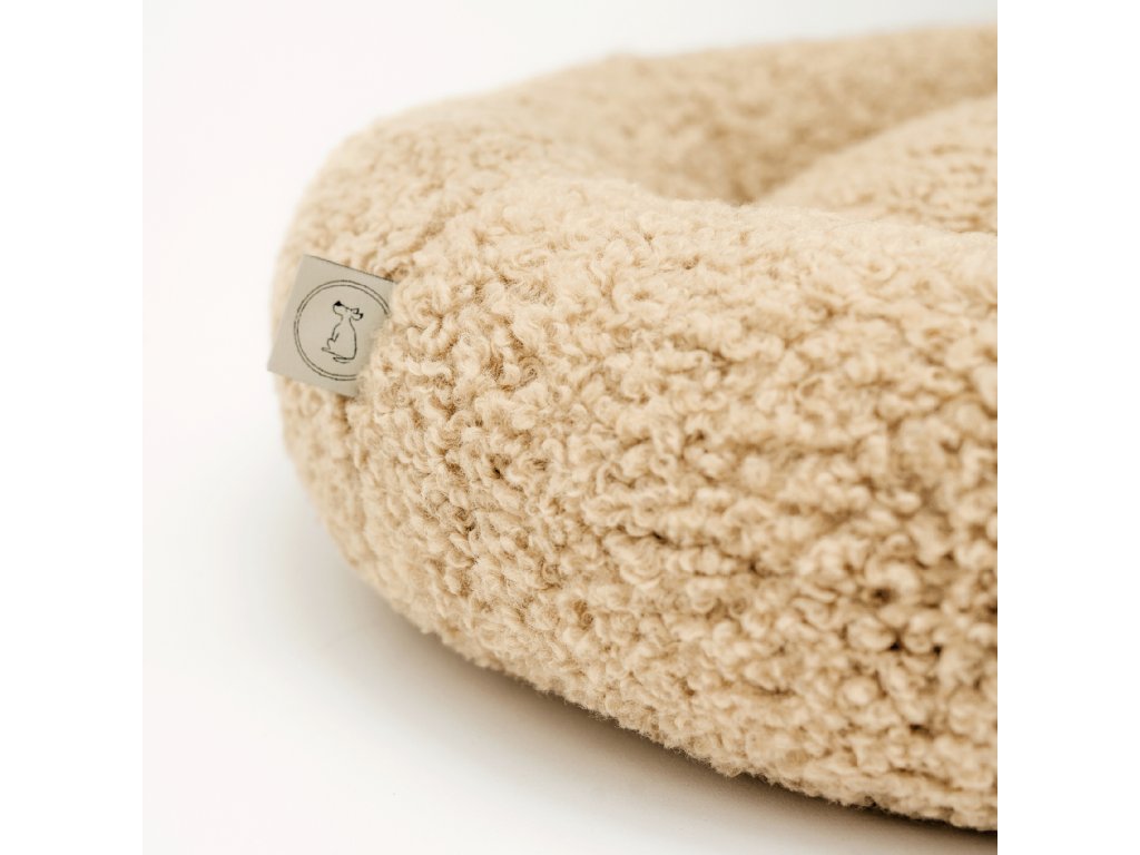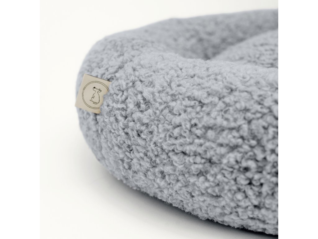 Kulatý pelíšek Mia je vyroben z měkké, nadýchané tkaniny typu „bouclé“. Její příjemně obklopující struktura připomíná plyš a okamžitě zve k odpočinku. Materiál spojuje výjimečnou měkkost a pružnost s moderní barevností, díky čemuž skvěle zapadá do aktuálních interiérových trendů.